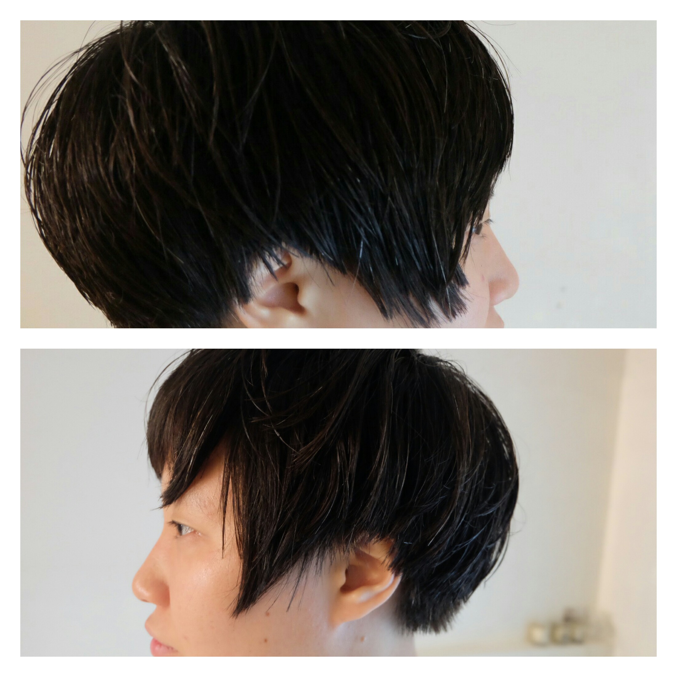 fotor_147851472955952     耳だしショートで左右の長さを変えて、違う雰囲気をだしています。左右で違ったデザインを楽しめるスタイルです。